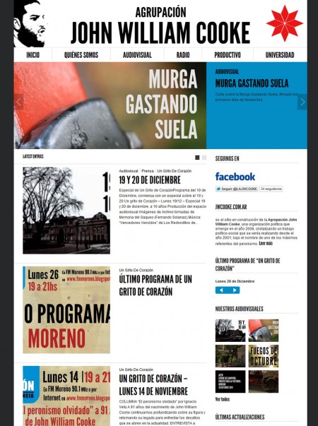 Entre el 2011 y el 2015 fui responsable de prensa de la agrupación John William Cooke. Allí realicé la planificación de estrategias de Comunicación en diversos medios y la coordinación de grupos de trabajo, logrando llevar adelante las siguientes acciones: